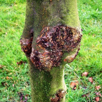 Het blijft niet alleen bij de wortels, ook stam en gesteltakken kunnen aangetast worden vooral bij de wat oudere bomen is dit duidelijk zichtbaar. Dikke ronde uitstulpingen aan de stam of ronde ruwe plekken geven aan dat de boom besmet is. |